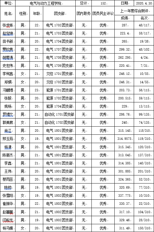 为切实保证发展新党员的质量,将团员中的优秀分子推荐给党组织,保持党组织的先进性,院团委对学院2019-2020学年第二学期各支部、学生组织“推优”结果进行了认真审核,现将审核后的推优结果公示如下: